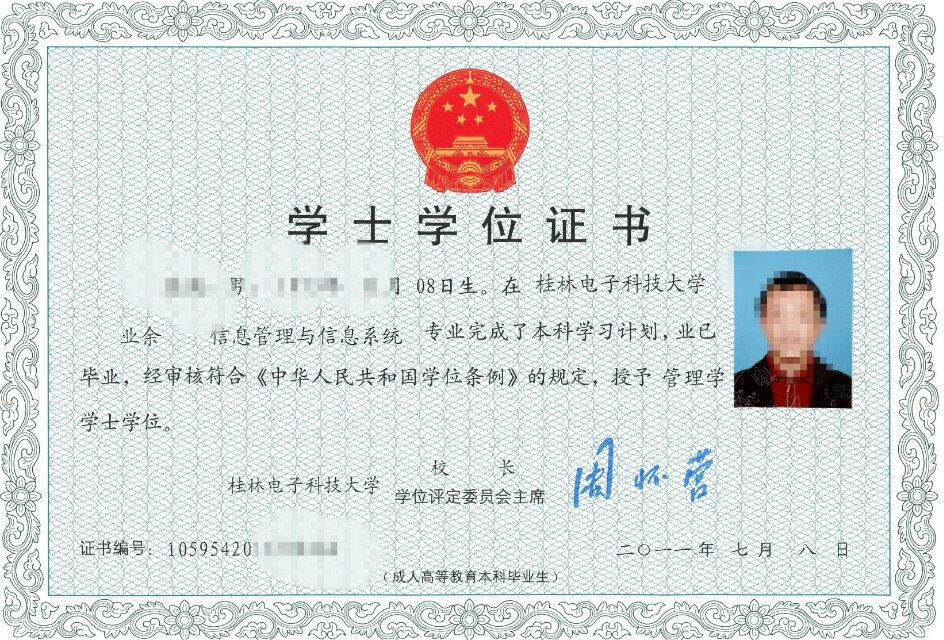 桂林電子科技大學(xué)學(xué)士學(xué)位證書樣本