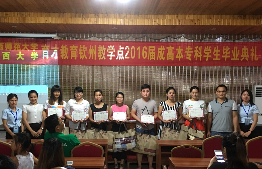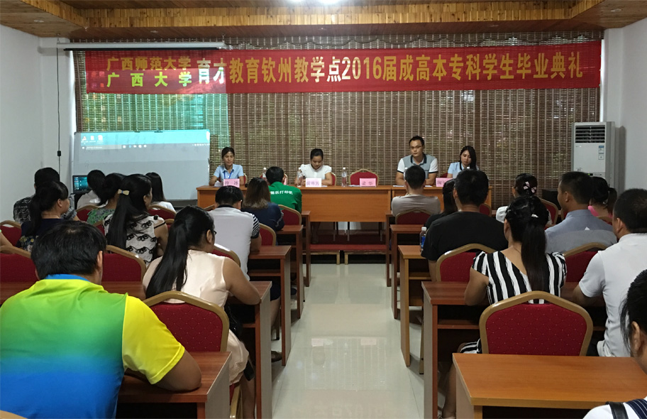 2016年7月3日上午,廣西師范大學(xué)、廣西大學(xué)育才教育北部灣教學(xué)點2016屆成人高等教育本??飘厴I(yè)典禮在育才北部灣分校隆重舉行。廣西育才教育集團負責(zé)人、北部灣分校校長陶長華、班主任黃靜老師、黃燕芳老師、符冰老師出席典禮,來自欽州市各區(qū)、縣的100多名畢業(yè)生代表參加了畢業(yè)典禮。畢業(yè)典禮由陶長華校長主持。