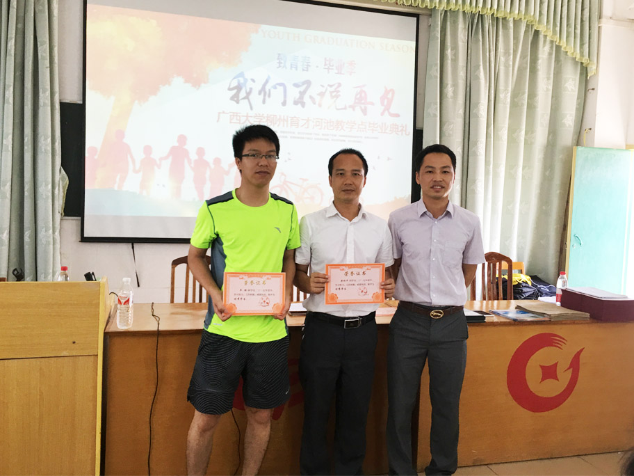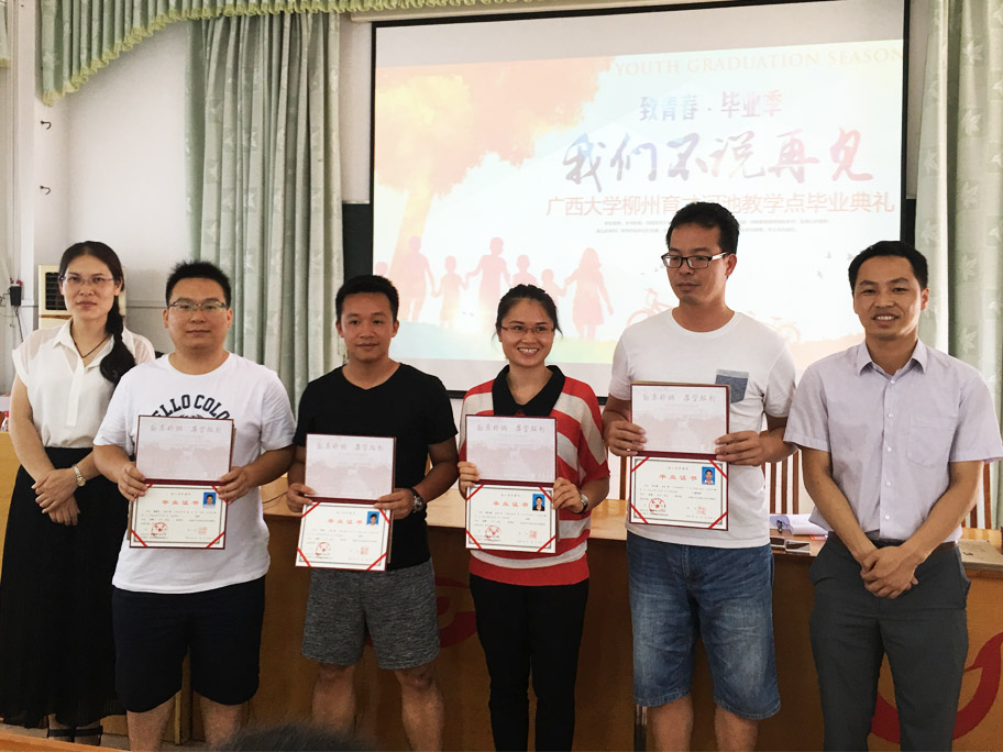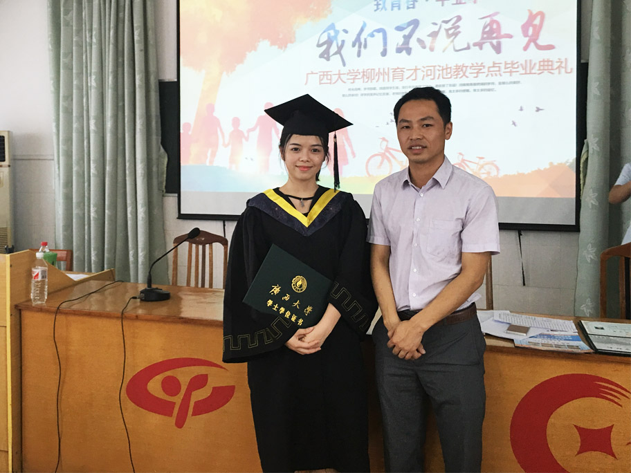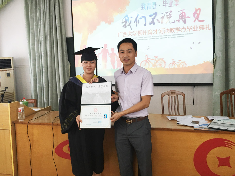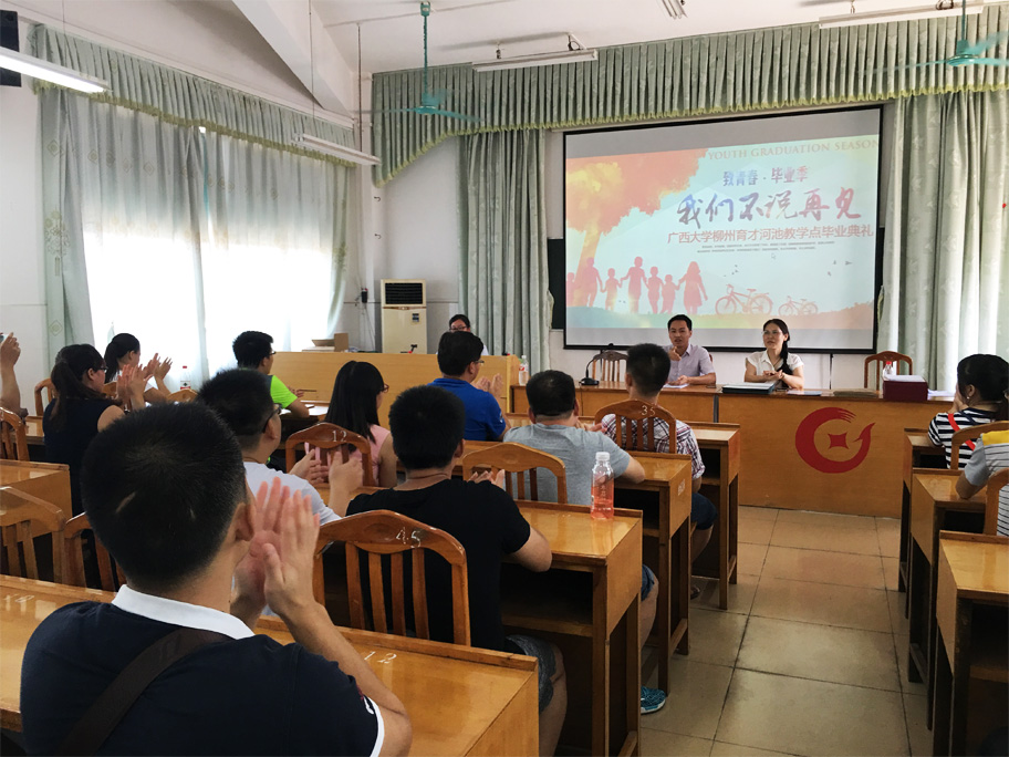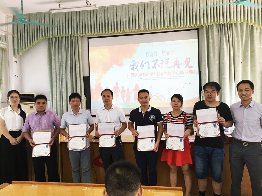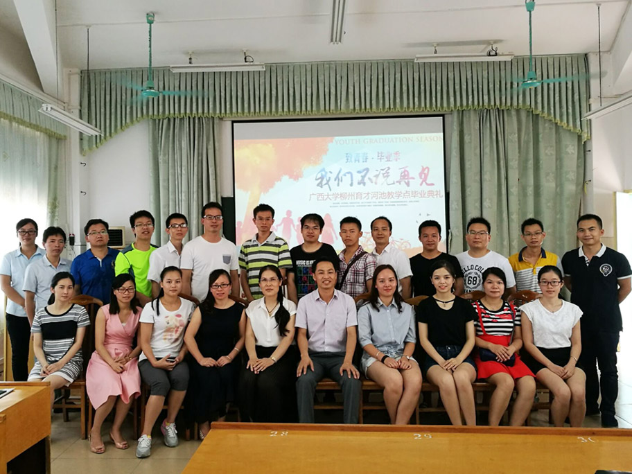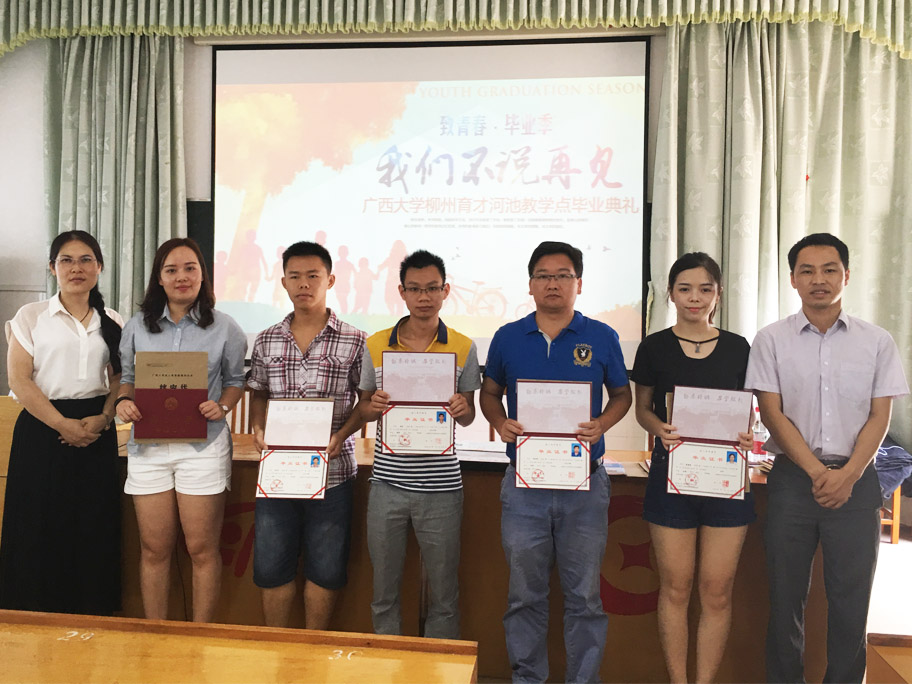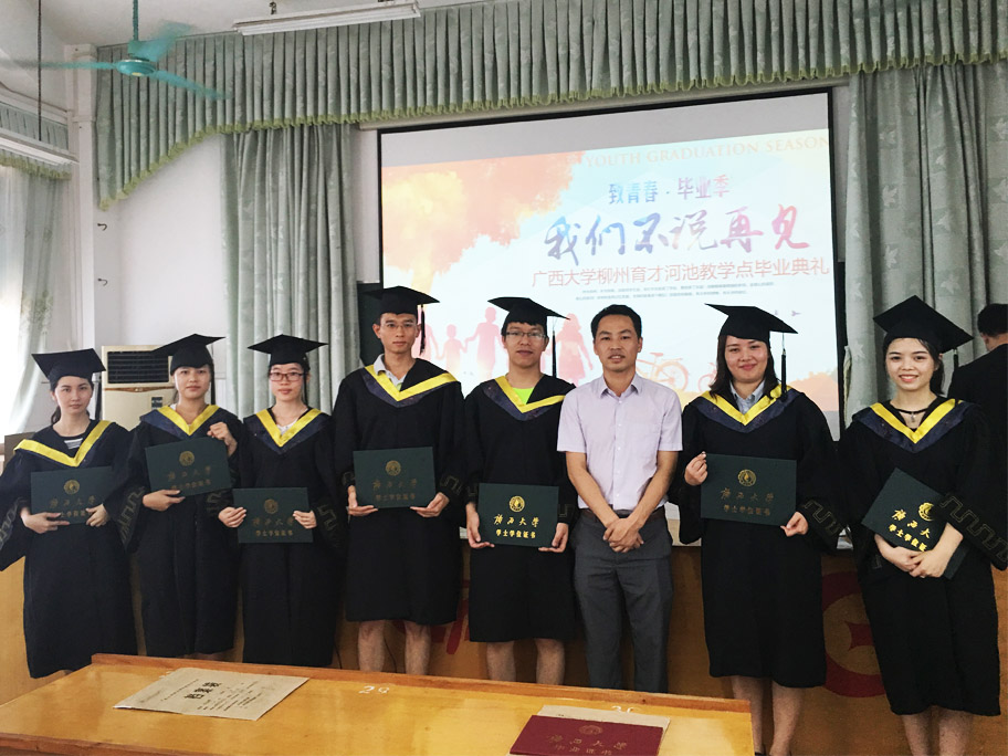 7月10日上午,廣西大學(xué)育才教育河池教學(xué)點(diǎn)2016屆成人高等教育本專科畢業(yè)典禮在育才河池分校隆重舉行。育才教育王志校長、李彩梅副校長、韋秋燕主任、河池分校梁森琰老師、周嘉慧老師出席典禮,來自河池市各區(qū)、縣的30多名畢業(yè)生代表參加了畢業(yè)典禮。畢業(yè)典禮由王志校長主持。