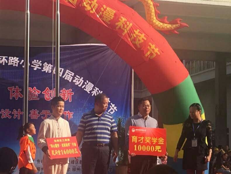 10月15日,柳州市東環(huán)路小學(xué)第四屆動漫科技節(jié)在東環(huán)路小學(xué)隆重開幕。育才教育黨支部書記、董事長蔣華老師在開幕式現(xiàn)場捐贈了10000元育才獎學(xué)金。