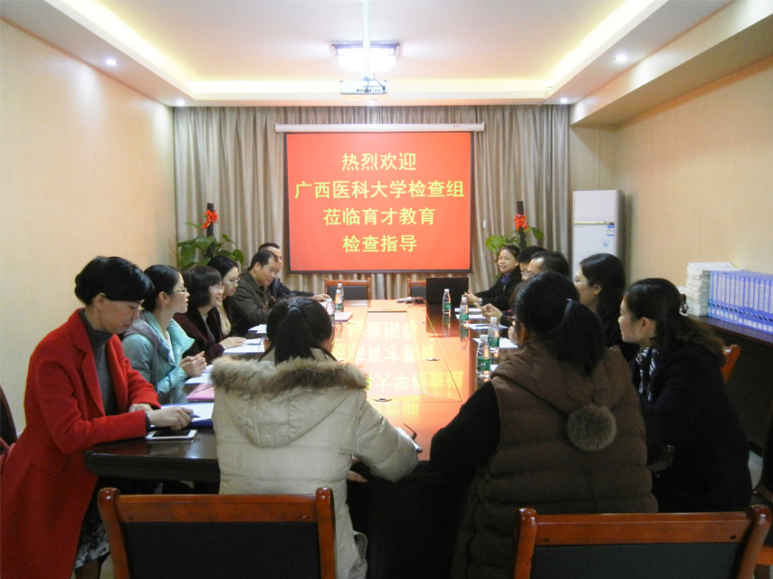 11月12日,廣西醫(yī)科大學(xué)繼續(xù)教育學(xué)院莫銳英副院長、李春燕副院長帶隊一行6人蒞臨育才柳州總部進(jìn)行教學(xué)評估檢查,廣西育才教育集團(tuán)黨支部書記、董事長蔣華老師、醫(yī)學(xué)部部長蔣仕榮、校長王志、副校長李彩梅參加了匯報會。會議由莫銳英副院長主持。