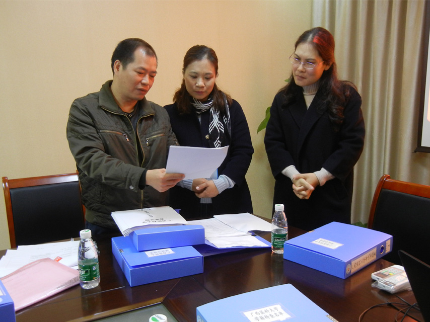 廣西醫(yī)科大學(xué)繼續(xù)教育學(xué)院檢查組查閱文件資料
