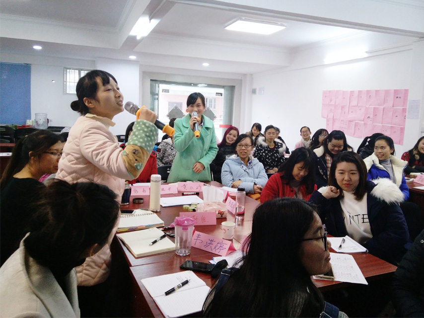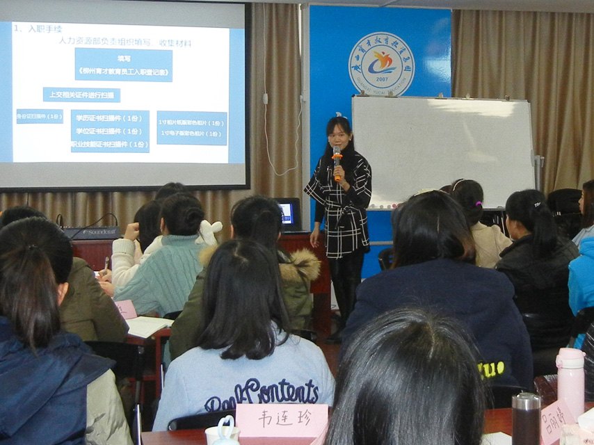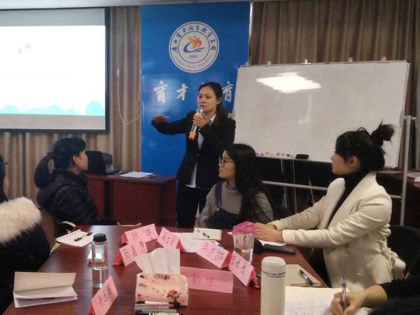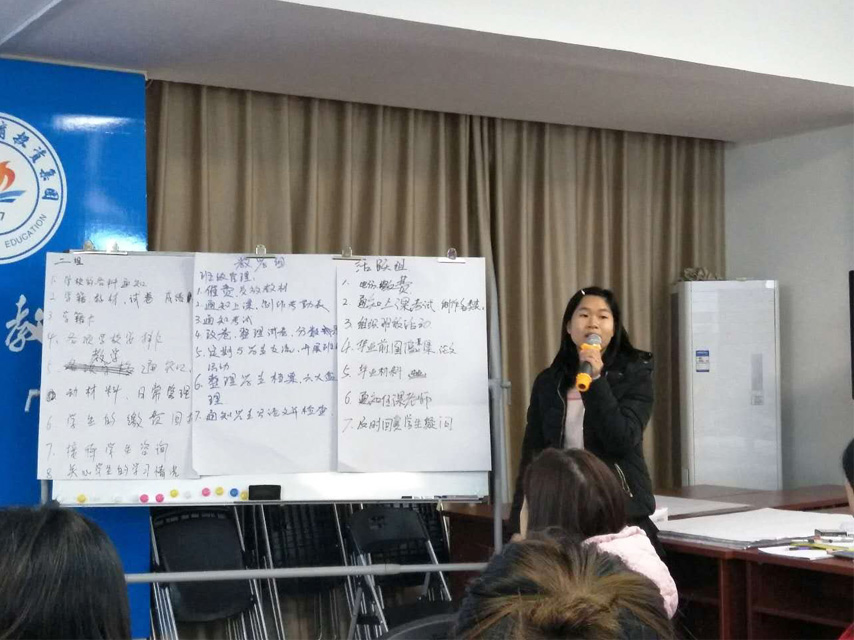 集團為此次培訓做了精心的準備,選派了王志校長、李彩梅副校長以及優(yōu)秀的部門主任擔任培訓老師。培訓為期兩天半,主要內容包括:育才的企業(yè)文化內涵建設、學籍管理流程、教學管理流程、班主任崗位職責、人事行政制度等。培訓以課件講授、小組討論、師生互動等多種形式組成。培訓結束后對參訓學員進行了統(tǒng)一考試,最后是總結分享會。分享會上,學員依次上臺表達了自己的學習心得,一致認為此次培訓班的形式和內容都非常好,幾天的學習讓她們獲益良多,紛紛表示要將自己所學運用到工作中去。