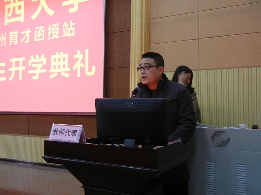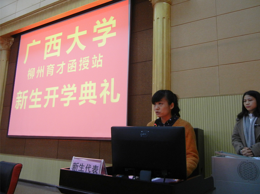 廣西大學(xué)柳州育才函授站負(fù)責(zé)人蔣華老師向同學(xué)們介紹了廣西育才教育集團(tuán)的發(fā)展歷史及當(dāng)前的基本情況,目前育才有成人高等教育(函授、業(yè)余)本??瓢啵譃榉轻t(yī)學(xué)類和醫(yī)學(xué)類兩大塊;二是網(wǎng)絡(luò)教育本??瓢唷OM劳袕V西大學(xué)的優(yōu)勢(shì)教學(xué)資源,進(jìn)一步發(fā)展地方繼續(xù)教育,提升服務(wù)社會(huì)的能力。蔣華老師向新生提出兩點(diǎn)希望:一是希望大家樹立終身學(xué)習(xí)的理念,學(xué)會(huì)自主學(xué)習(xí);二是希望大家明確學(xué)習(xí)目的,端正學(xué)習(xí)態(tài)度。最后祝愿大家都能順利畢業(yè)。