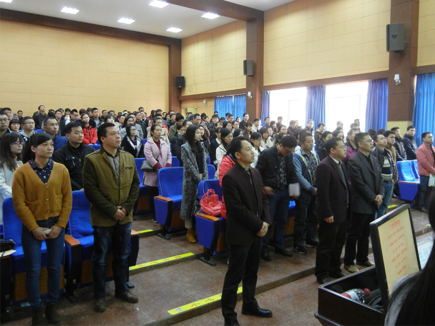開學(xué)典禮在全體師生起立唱國(guó)歌中拉開了帷幕。“我向成人高等教育2017級(jí)新生表示誠(chéng)摯的歡迎!你們所選擇的廣西大學(xué),是廣西唯一一所的國(guó)家“211工程”建設(shè)高校,中西部實(shí)力建設(shè)高校,2016年12月成立了醫(yī)學(xué)院,是廣西綜合實(shí)力最強(qiáng),中國(guó)大學(xué)百?gòu)?qiáng)高校。竺可楨、李四光曾經(jīng)在這里任教……”,陳海副院長(zhǎng)在典禮上給同學(xué)們?cè)敿?xì)介紹了廣西大學(xué)的情況,如數(shù)家珍,娓娓道來,讓同學(xué)們對(duì)西大有了進(jìn)一步的了解。陳海副院長(zhǎng)送給同學(xué)們四個(gè)“千萬”:一、千萬記住自己是一名光榮的廣西大學(xué)學(xué)子;二、千萬記住自己是一名繼續(xù)教育的學(xué)生,掌握正確的學(xué)習(xí)方式,方法,提升學(xué)習(xí)能力;三、千萬記住比文憑更重要的是要提升個(gè)人的素質(zhì)教育;四、千萬記住學(xué)習(xí)考試不是最終的目的,提升自己才是最終的目的。提升學(xué)習(xí)的方法和途徑,用以解決工作和生活中的問題。叮囑新生珍惜學(xué)習(xí)機(jī)會(huì),積累人脈資源,回報(bào)母校。