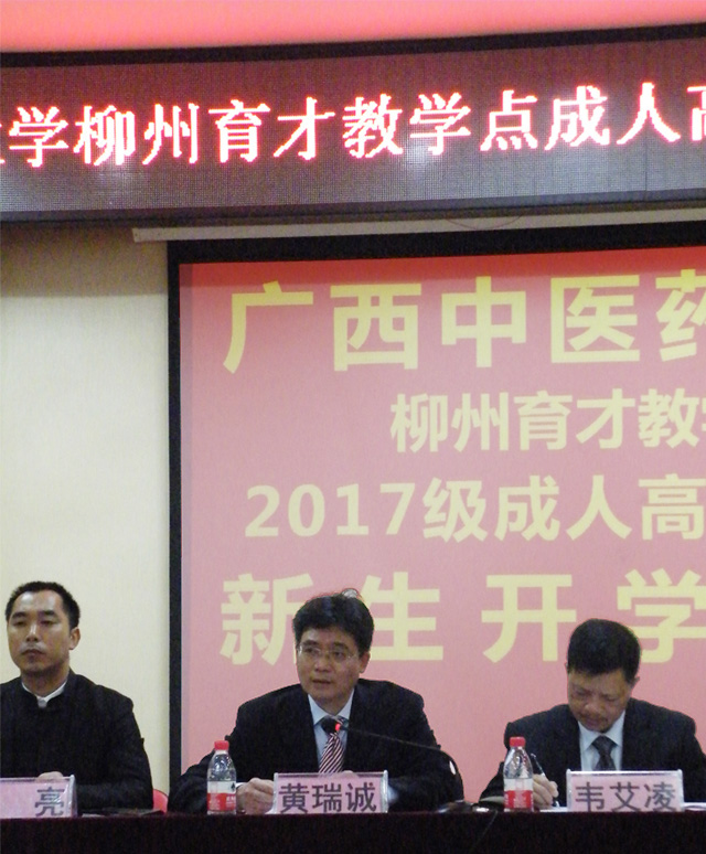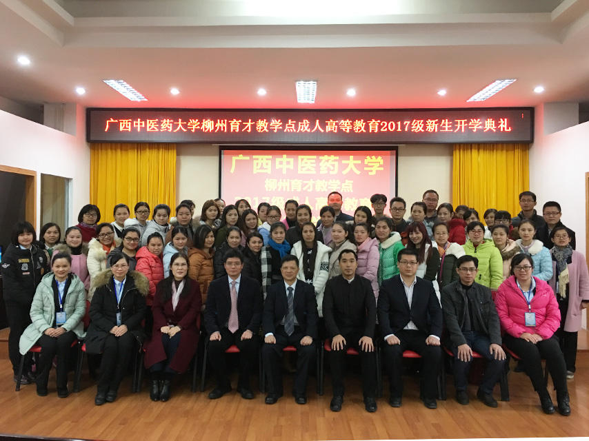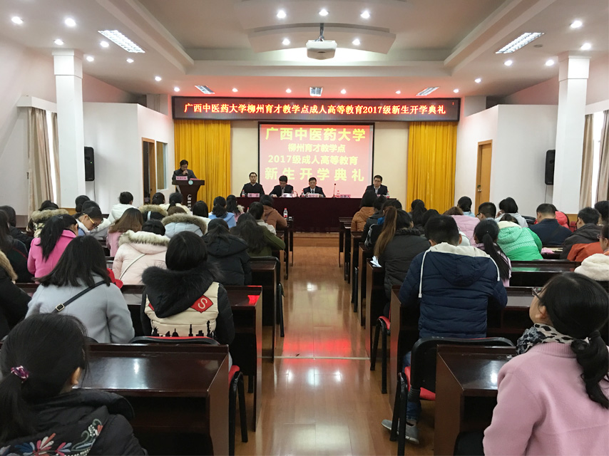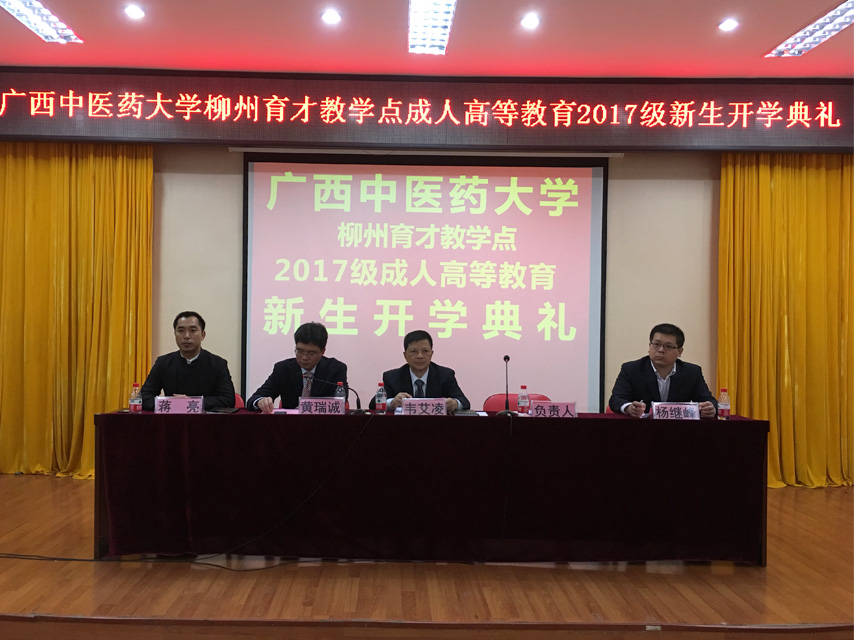 廣西中醫(yī)藥大學(xué)柳州育才教學(xué)點(diǎn)2017級(jí)成人高等教育新生開(kāi)學(xué)典禮在柳州市中醫(yī)院勝利召開(kāi),廣西中醫(yī)藥大學(xué)成教院院長(zhǎng)、博士生導(dǎo)師、二級(jí)教授韋艾凌、副院長(zhǎng)黃瑞誠(chéng)、院長(zhǎng)助理、培訓(xùn)部主任楊繼峰出席開(kāi)學(xué)典禮,韋艾凌院長(zhǎng)、黃瑞誠(chéng)副院長(zhǎng)作重要講話。育才教育李彩梅副校長(zhǎng)、蔣亮副校長(zhǎng)以及來(lái)自柳州各大醫(yī)院、衛(wèi)生院、醫(yī)藥公司和藥店等100多名新生代表共同參加了開(kāi)學(xué)典禮。開(kāi)學(xué)典禮由育才學(xué)工辦主任陳韻先主持。