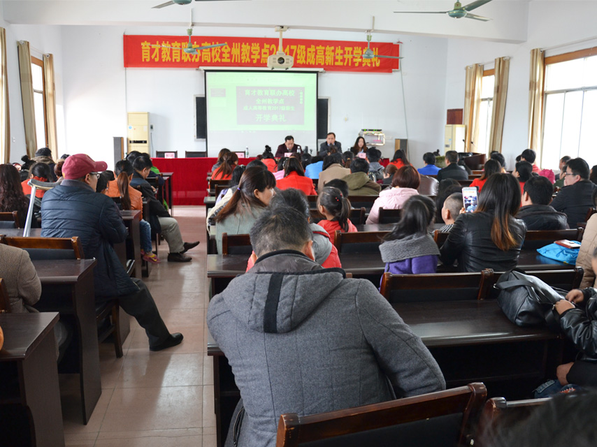 3月4日上午,育才全州分校隆重舉行育才聯(lián)辦高校全州分校2017級(jí)成人高等教育新生開(kāi)學(xué)典禮,育才教育黨支部書(shū)記、董事長(zhǎng)蔣華、育才桂林大區(qū)域總監(jiān)、柳州市育才教育培訓(xùn)中心副校長(zhǎng)蔣亮、全州分校校長(zhǎng)蔣欽軍、教學(xué)管理老師胡靜、肖蘭出席典禮,來(lái)自全州縣的60多名新生代表參加了開(kāi)學(xué)典禮,典禮由胡靜老師主持。開(kāi)學(xué)典禮結(jié)束后,全州分校校長(zhǎng)蔣欽軍為全體新生作入學(xué)教育。