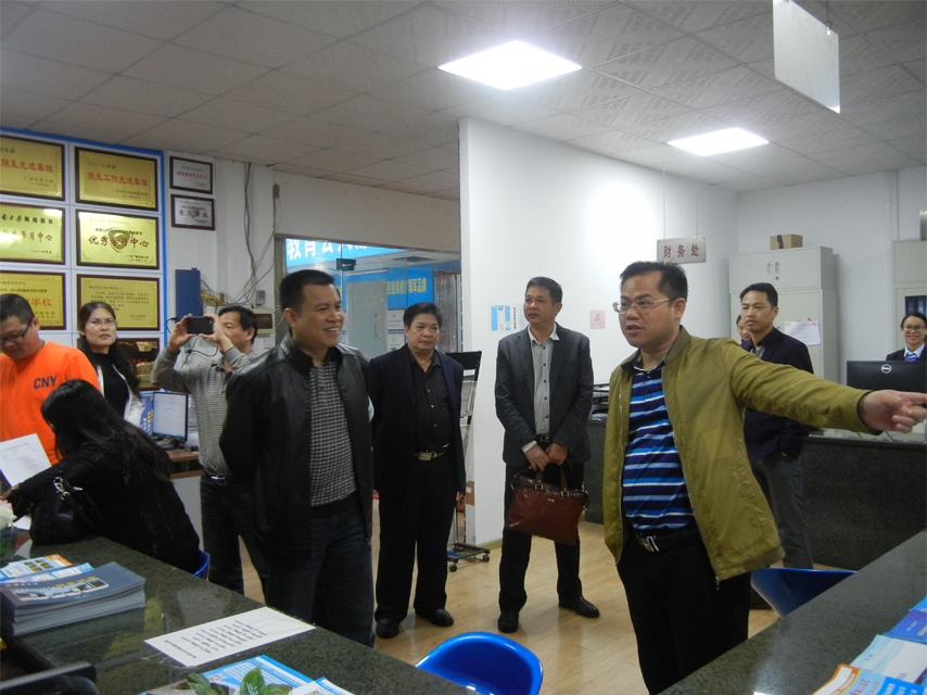 4月25日,廣西教育學院成人教育學院院長周日南、副院長羅國干、辦公室主任覃明勇一行7人到育才柳州總部檢查指導。
