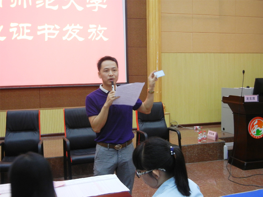 育才黨支部書記、董事長蔣華老師向2017屆畢業(yè)生表示熱烈祝賀,對劉玉紅院長的到來表示熱烈歡迎,向廣西師范大學(xué)送教上門表示衷心的感謝,希望畢業(yè)生學(xué)會感恩,不斷學(xué)習(xí),關(guān)心母校的發(fā)展,最后提醒畢業(yè)生妥善保管畢業(yè)證和畢業(yè)生檔案。