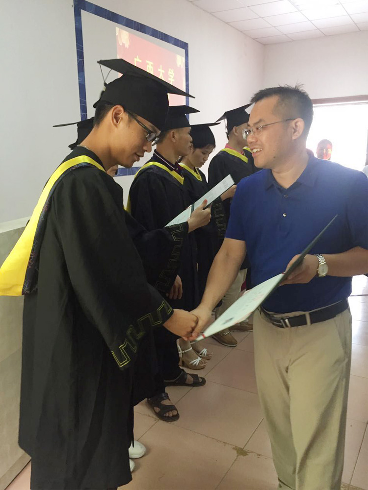 育才蔣華書記為獲得學(xué)位的畢業(yè)生頒發(fā)證書