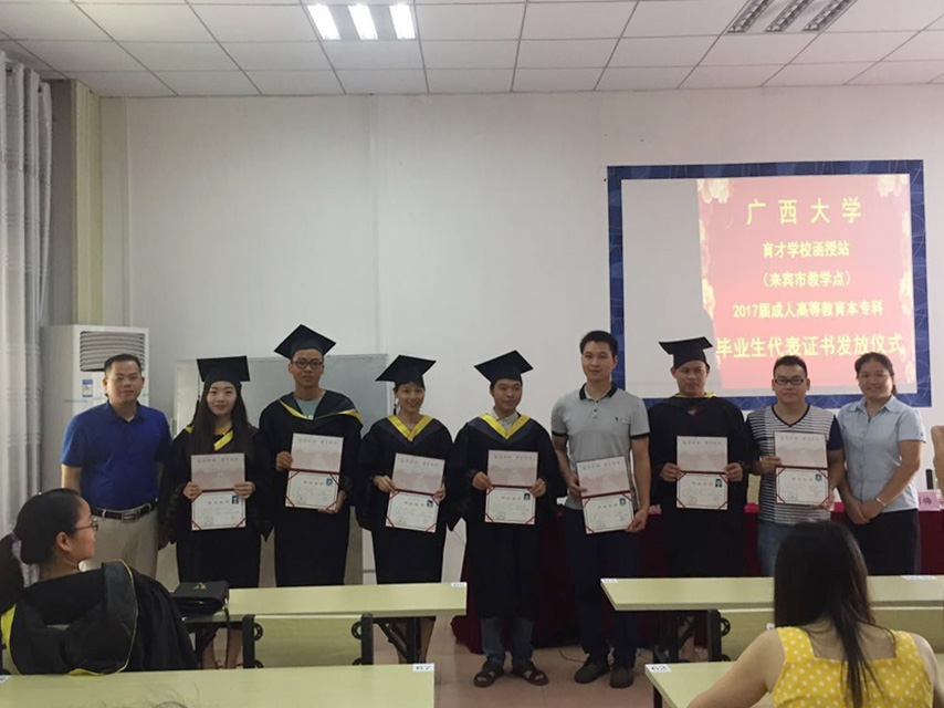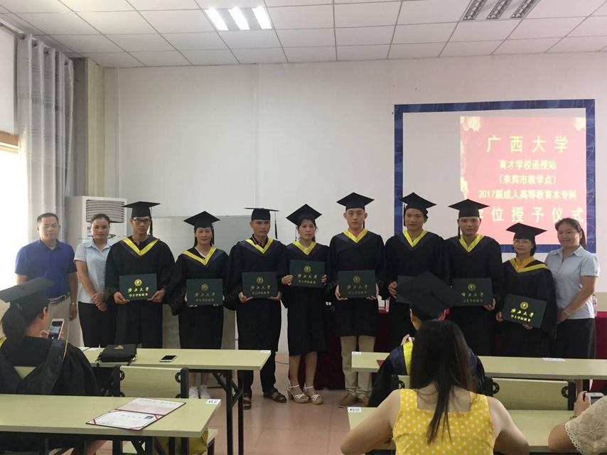 廣西大學(xué)育才函授站來賓教學(xué)點2017屆成高畢業(yè)典禮隆重舉行