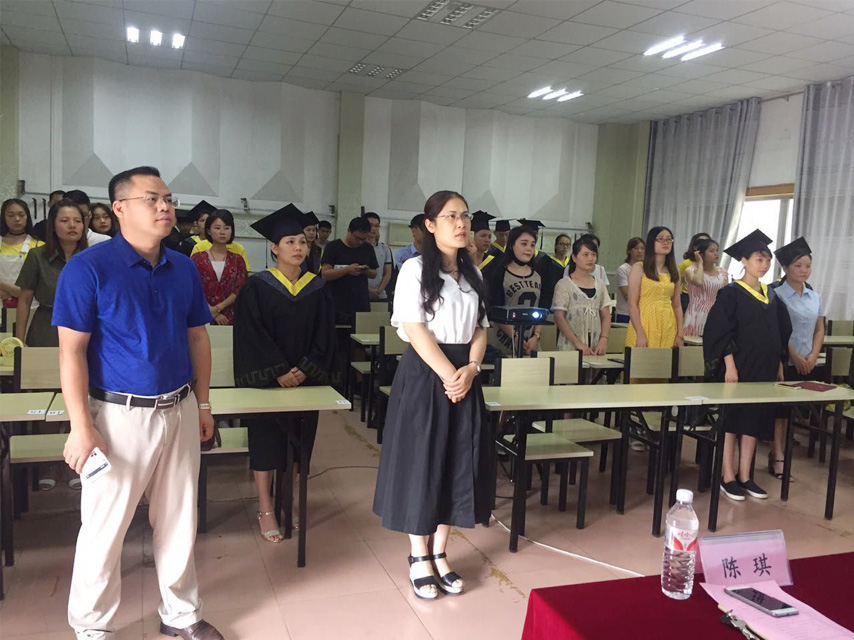 7月24日,廣西大學(xué)育才教育函授站來賓教學(xué)點2017屆成人高等教育本??飘厴I(yè)典禮暨學(xué)位授予儀式在育才來賓分校隆重舉行,育才教育黨支部書記,董事長蔣華、柳州市育才教育培訓(xùn)中心常務(wù)副校長李彩梅、來賓分校教學(xué)管理老師覃妍英、陳琪、羅慧芳以及來賓市各區(qū)、縣的50多名畢業(yè)生代表參加了典禮,典禮由覃妍英老師主持。