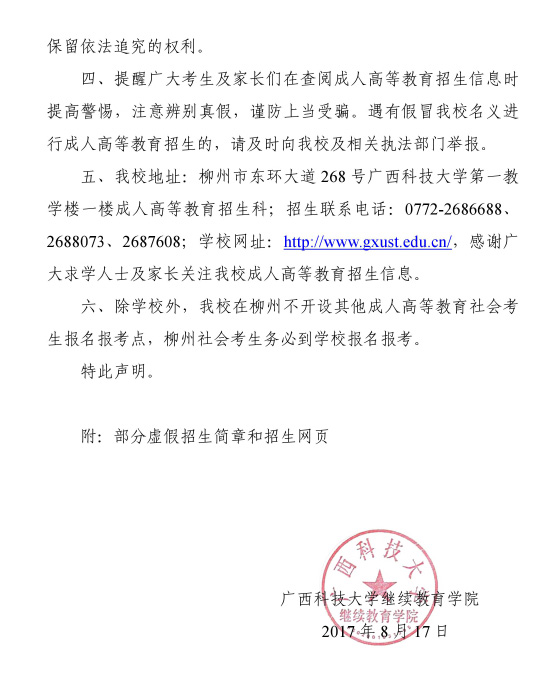 柳州市東環(huán)大道268號廣西科技大學(xué)第一教學(xué)樓一樓繼續(xù)教育學(xué)院招生科