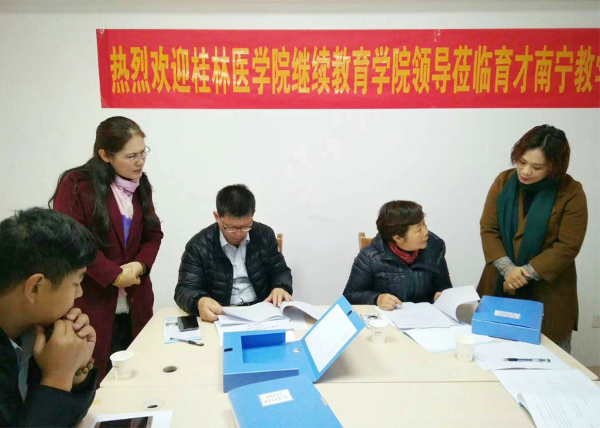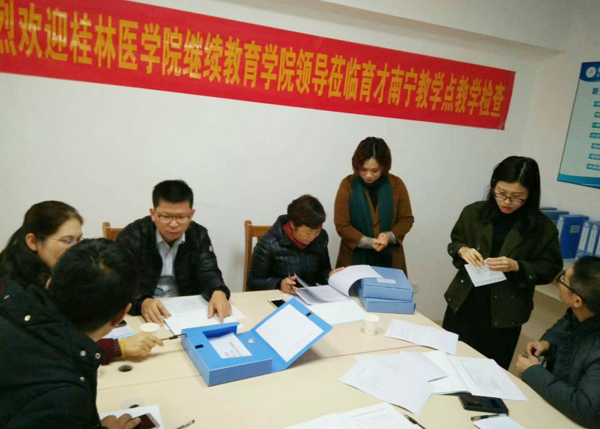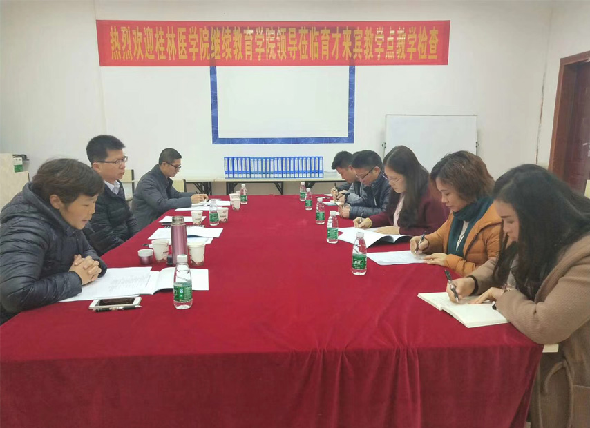 近日,桂林醫(yī)學(xué)院繼續(xù)教育學(xué)院院長高東、副院長何冰、辦公室主任、招生辦主任呂東南到育才南寧、來賓教學(xué)點進行教學(xué)檢查,育才總部分管教學(xué)的常務(wù)副校長李彩梅、醫(yī)學(xué)部教學(xué)副校長韋彥清陪同檢查并作匯報。