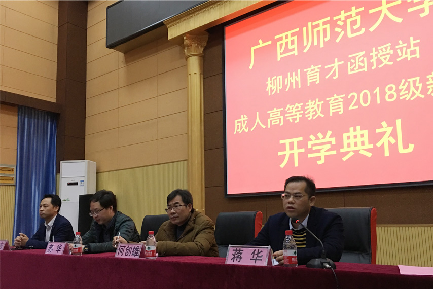 1月6日上午,廣西師范大學柳州育才函授站成人高等教育2018級新生開學典禮在柳州總部隆重舉行。廣西師范大學繼續(xù)教育學院副院長何創(chuàng)雄、學歷部主任蘇華出席典禮并作重要講話。廣西育才教育黨支部書記、函授站站長蔣華老師、育才教育校長王志、常務(wù)副校長李彩梅以及來自柳州各行業(yè)的一百余名新生代表參加了開學典禮。