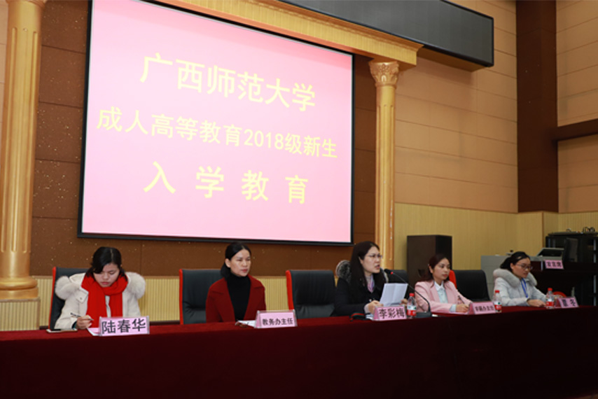 廣西師范大學成教院學歷部主任蘇華老師在會上介紹了新生入學的注意事項,提醒大家仔細核對錄取通知書的信息,并就轉(zhuǎn)錄專業(yè)、專本科函授學制和學分規(guī)定、畢業(yè)證圖像采集以及新同學較為關(guān)心的申請學士學位證書的條件等進行了詳細的解答。