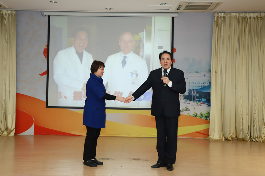 趙邦教授為柳州市人民醫(yī)院護(hù)理部主任蔡潔簽名贈(zèng)書