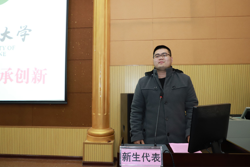 2018中藥學(xué)專業(yè)本科班的夏霖同學(xué)代表新生發(fā)言,他說,選擇報(bào)讀廣西中醫(yī)藥大學(xué)成人高等教育是人生的一個(gè)新起點(diǎn),將會(huì)珍惜這難得的學(xué)習(xí)時(shí)光,和同學(xué)們一起在“弘毅自強(qiáng),傳承創(chuàng)新”的校訓(xùn)指引之下,踏踏實(shí)實(shí),一步一個(gè)腳印,學(xué)出成效和成果,實(shí)現(xiàn)新的夢想和追求。