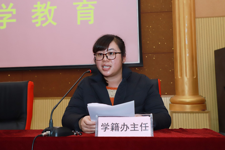 學(xué)籍辦主任韋秋燕作學(xué)籍管理培訓(xùn)