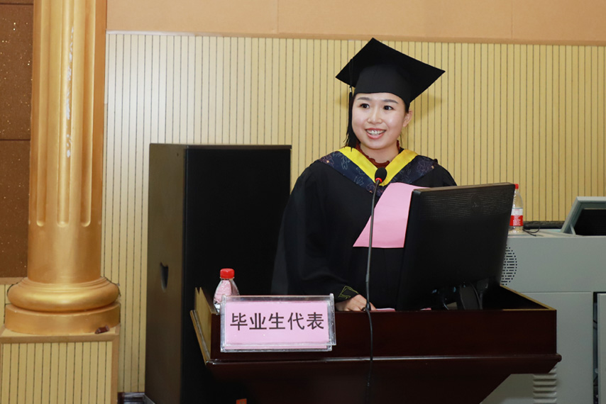 2015級(jí)護(hù)理學(xué)本科專業(yè)、來(lái)自柳州市婦幼保健院護(hù)理部的湯靜作為畢業(yè)生代表,在發(fā)言中表達(dá)了畢業(yè)之際的不舍之情以及對(duì)母校、對(duì)老師、對(duì)同窗的感恩之情,她表示畢業(yè)并不代表結(jié)束,而是宣布進(jìn)步,今后要不斷學(xué)習(xí),努力創(chuàng)造,填好人生的履歷表,為母校增輝添彩。
