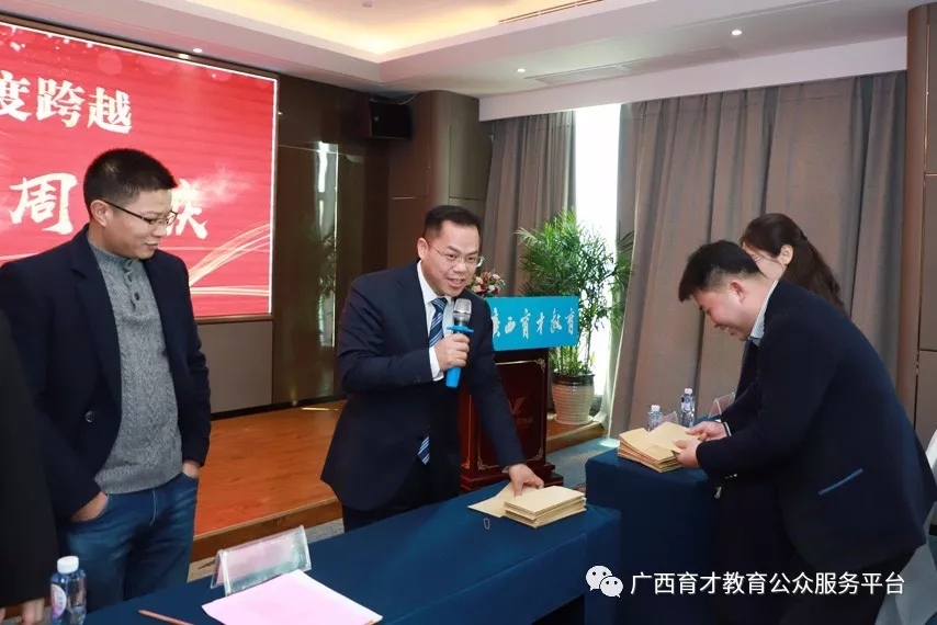 黨支部書記、董事長蔣華作公司全年工作總結(jié)。他說,2017年是育才教育發(fā)展的關(guān)鍵一年,也是企業(yè)改革奮進、創(chuàng)新發(fā)展的一年,公司秉承 “誠信做事,創(chuàng)優(yōu)質(zhì)服務;誠心做人,辦良心教育”的價值觀,牢記”服務至上、共同成長、促進教育產(chǎn)業(yè)發(fā)展“的企業(yè)使命,以十周年慶典為契機,完善各類制度,提高辦學水平,塑造育才品牌;以黨支部、工會組織為載體,加強團隊建設,打造“相互尊重、平等互助、健康和諧”的企業(yè)文化。在大家的共同努力下,在大家共同努力下,出色地完成了年初制定的工作計劃,在黨建、學工活動、企業(yè)制度建設、企業(yè)工會活動、員工福利和履行企業(yè)社會責任等在內(nèi)的各項工作進一步規(guī)范和完善,整體辦學水平逐步提高,育才教育品牌和行業(yè)口碑繼續(xù)得到提升和加強,公司整體實力和企業(yè)文化發(fā)展同步邁入新的臺階。