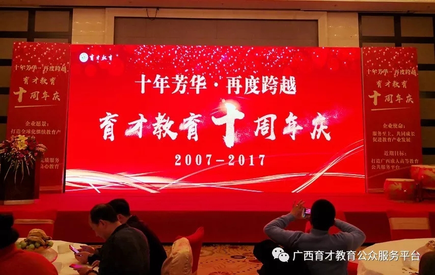 2月5日晚,育才教育十周年慶典(2007-2017)暨師生聯(lián)誼晚宴及迎新晚會在柳州麗笙酒店圓滿舉行。