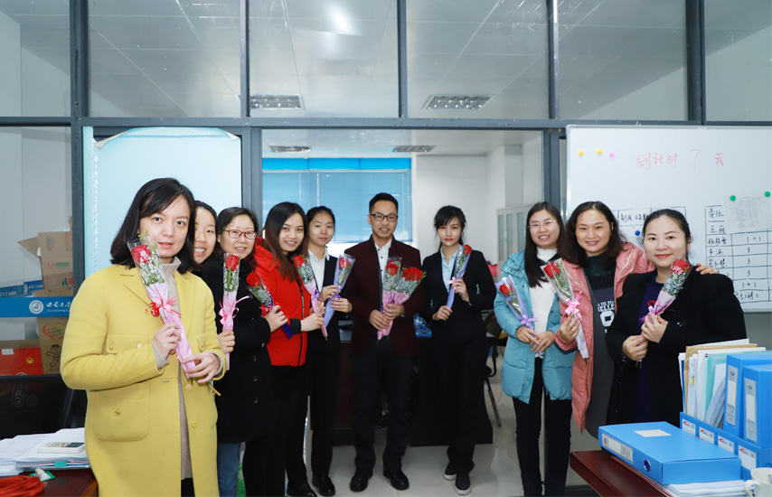 3月8日上午,三八“女神”節(jié)恰逢天公作美,雨后暖陽,育才柳州總部和柳州分校洋溢著節(jié)日的歡樂氣氛。廣西育才教育副總經(jīng)理、工會主席王志代表育才領(lǐng)導(dǎo)班子分別到財務(wù)中心、綜合行政中心、教學(xué)中心、招生中心、培訓(xùn)部以及科技大校本部辦公室進行節(jié)日慰問,并為育才教育的每一位“女神”送上玫瑰花和節(jié)日祝福,同時鼓勵育才教育女職工在新的一年里努力工作,快樂生活。各部門的“女神”們則以不同的主題創(chuàng)意合影留念,致青春,也致這個別樣的“女神”節(jié)。