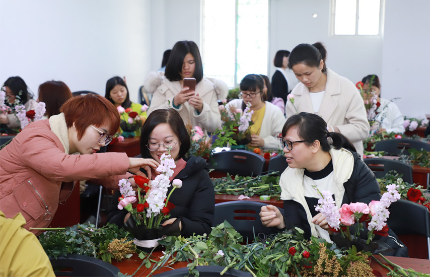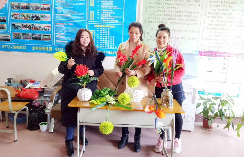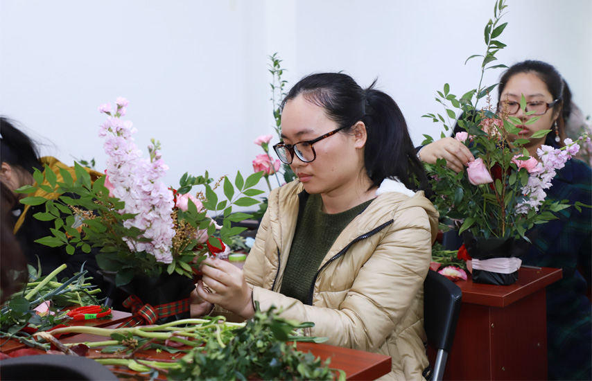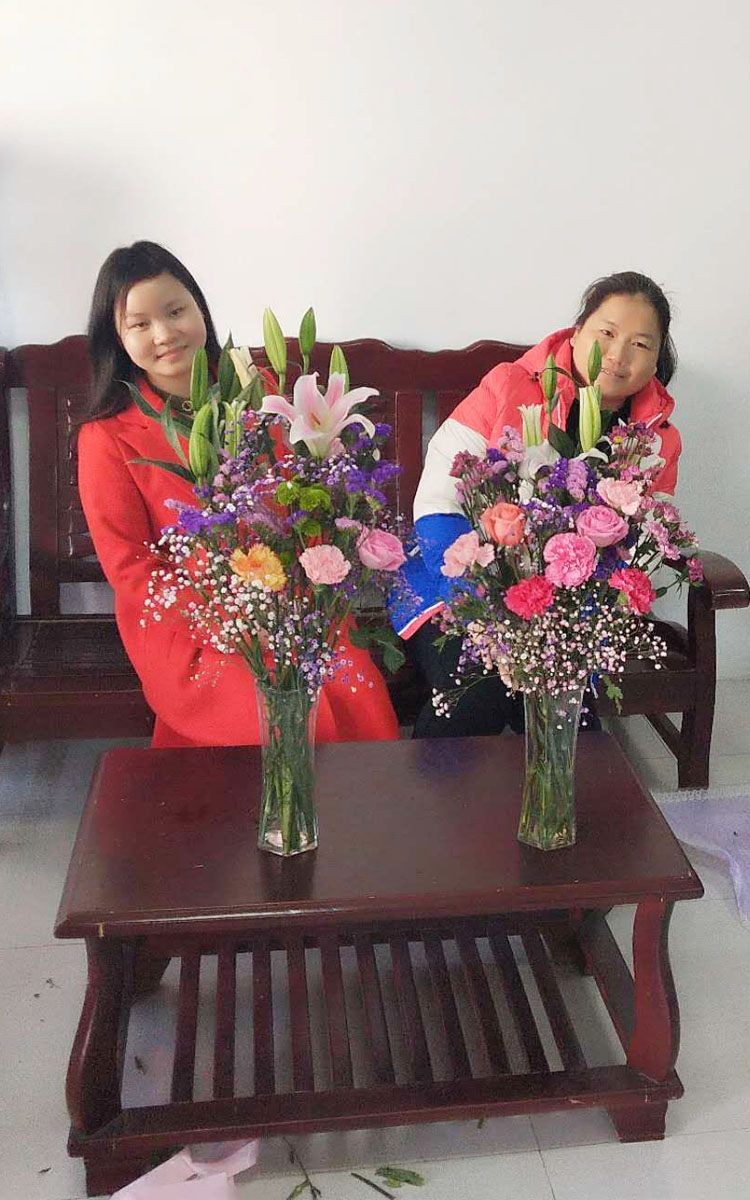 3月9日上午,廣西育才教育在柳州總部舉行了插花花藝培訓(xùn)暨插花花藝DIY比賽?,F(xiàn)場猶如花的海洋,猩紅泡泡、洋牡丹、襯裙紅玫瑰,紅佛玫瑰、粉佳人玫瑰等新品種優(yōu)質(zhì)花材靜靜地伏在桌上,等待愛花懂花的“女神”來為它們精心剪裁架構(gòu),最終成為一件如畫的插花作品蹁躚入世。雖然育才教育的不少女老師都是初次嘗試花卉插花,但在她們的精心手作和不斷完善下,群芳爭艷,佳作頻現(xiàn),本次插花花藝DIY比賽的整體水平也得到了三位插花培訓(xùn)老師的好評,并評出了一等獎1名,二等獎2名和三等獎3名。
