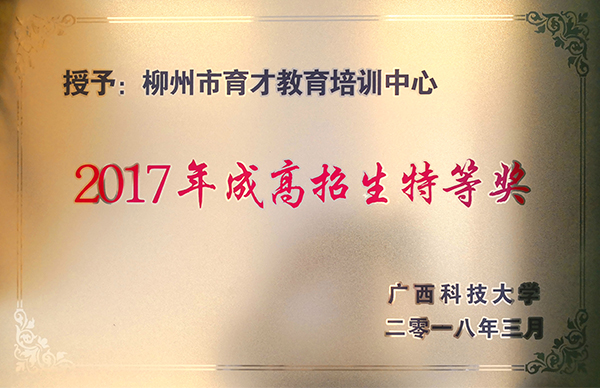 育才教育榮獲廣西科技大學“2017年成高招生特等獎”