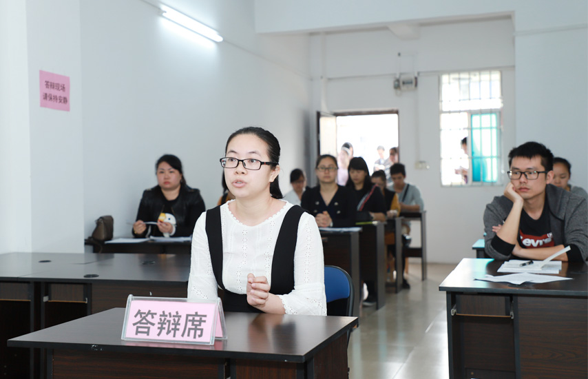 每個論文答辯小組由兩名答辯老師和一名答辯秘書組成。先由學(xué)生對其論文的主要內(nèi)容進行概述,然后答辯老師結(jié)合學(xué)生畢業(yè)論文的審閱意見提出問題,由學(xué)生就答辯老師所提問題予以答辯。通過提問環(huán)節(jié),老師在肯定學(xué)生的理論寫作水平之外,并指出論文存在的不足及修改的內(nèi)容和方式,最后由答辯小組按標準評定學(xué)生畢業(yè)論文的最終成績。