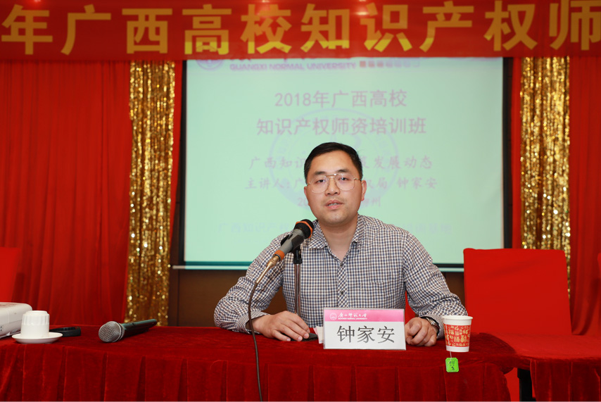 廣西知識(shí)產(chǎn)權(quán)局綜合處副調(diào)研員鐘家安講話