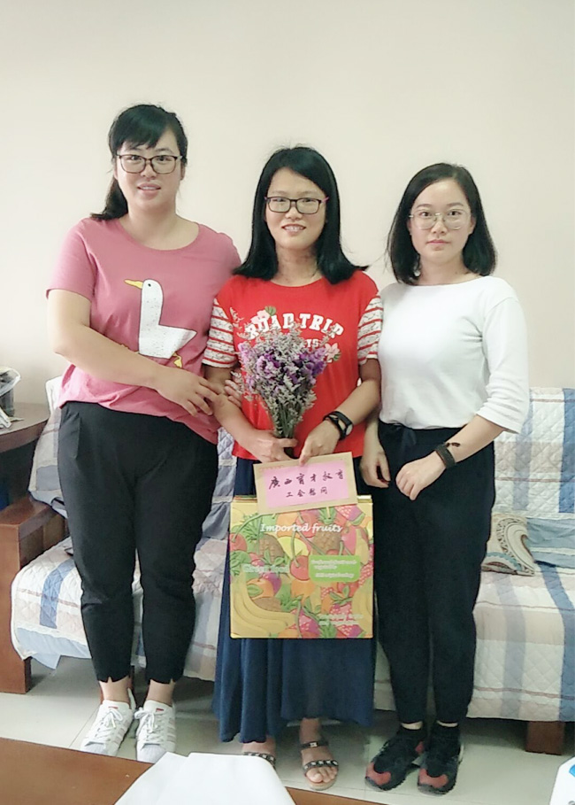 覃慧蘭老師感謝育才領(lǐng)導(dǎo)及老師們的關(guān)心,希望自己能早日投入工作,繼續(xù)為育才作貢獻(xiàn)。