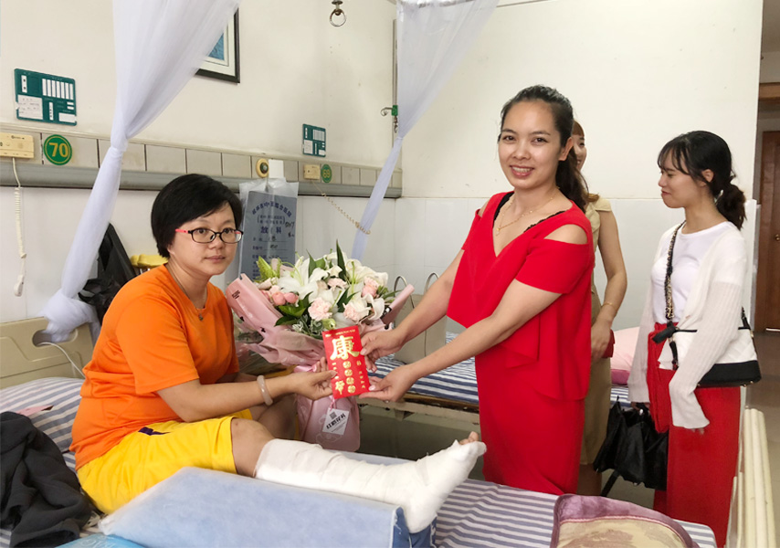 工會代表細(xì)心詢問黃肖曼老師的病情和治療情況,鼓勵她要樹立信心,積極配合治療,爭取早日康復(fù),黃肖曼老師對育才的牽掛和慰問表示由衷的感謝。