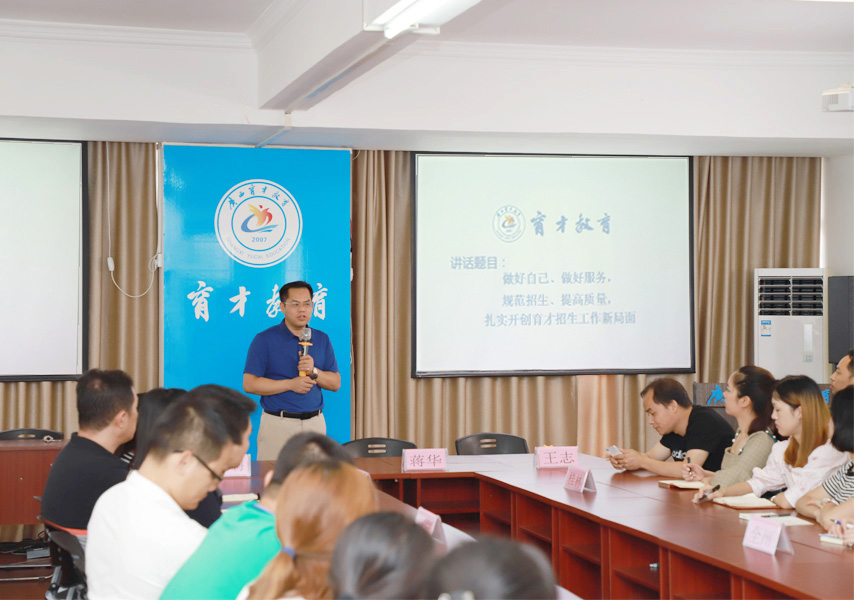 會(huì)上,黨支部書記、董事長(zhǎng)、總經(jīng)理蔣華作題為《做好自己、做好服務(wù),規(guī)范招生、提高質(zhì)量,扎實(shí)開創(chuàng)育才招生工作新局面》的重要講話,對(duì)育才2018年招生工作進(jìn)行動(dòng)員及工作部署,他從國(guó)家政策環(huán)境、高校定位、成考的重大改革、育才項(xiàng)目的調(diào)整變化、育才的辦學(xué)優(yōu)勢(shì)等方面進(jìn)行了闡述和分析,要求各部門、分校進(jìn)一步求新求變,創(chuàng)新招生方法;規(guī)范招生管理,提升招生質(zhì)量;做好全員招生和以生招生,通過(guò)團(tuán)隊(duì)的共同努力,實(shí)現(xiàn)全年既定的招生目標(biāo)。