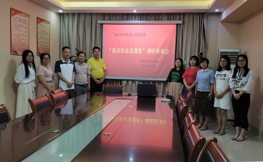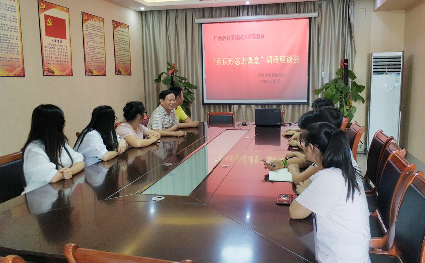 廣西教育學院成人教育學院覃明勇主任、陶文清老師到育才函授站召開“意識形態(tài)進課堂”調(diào)研座談會
