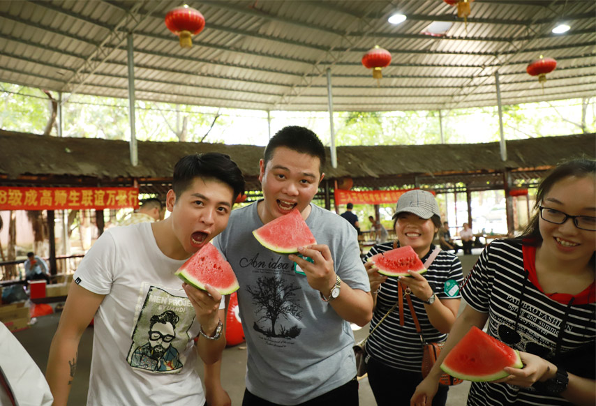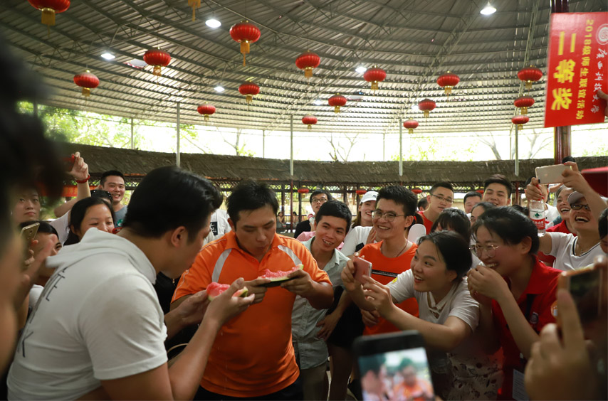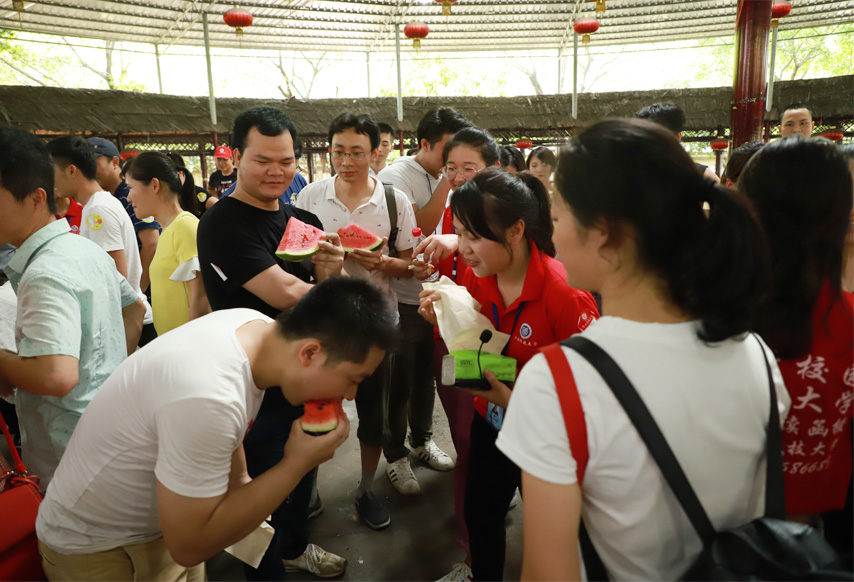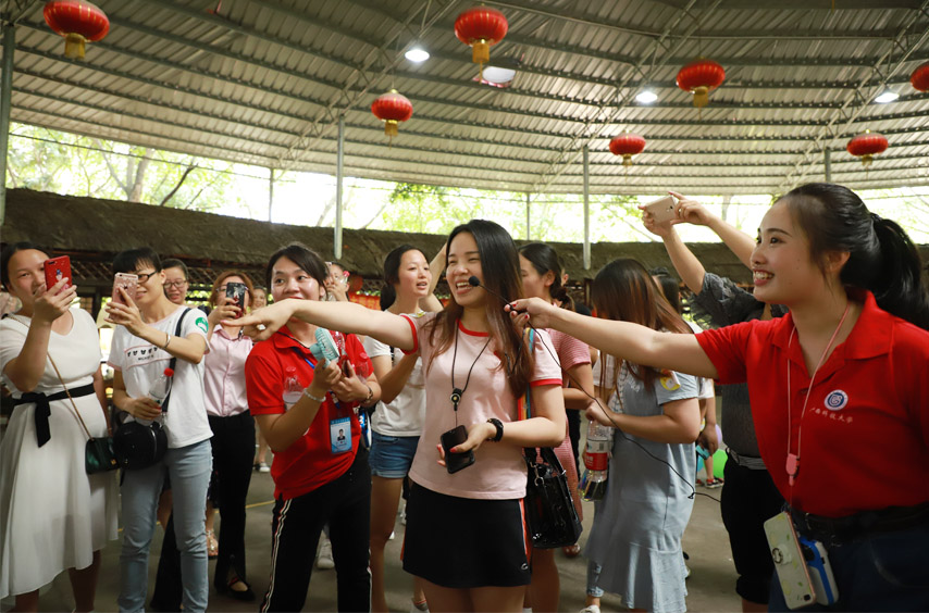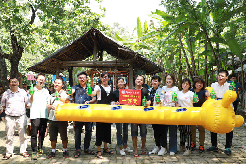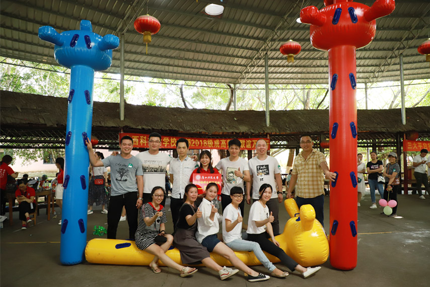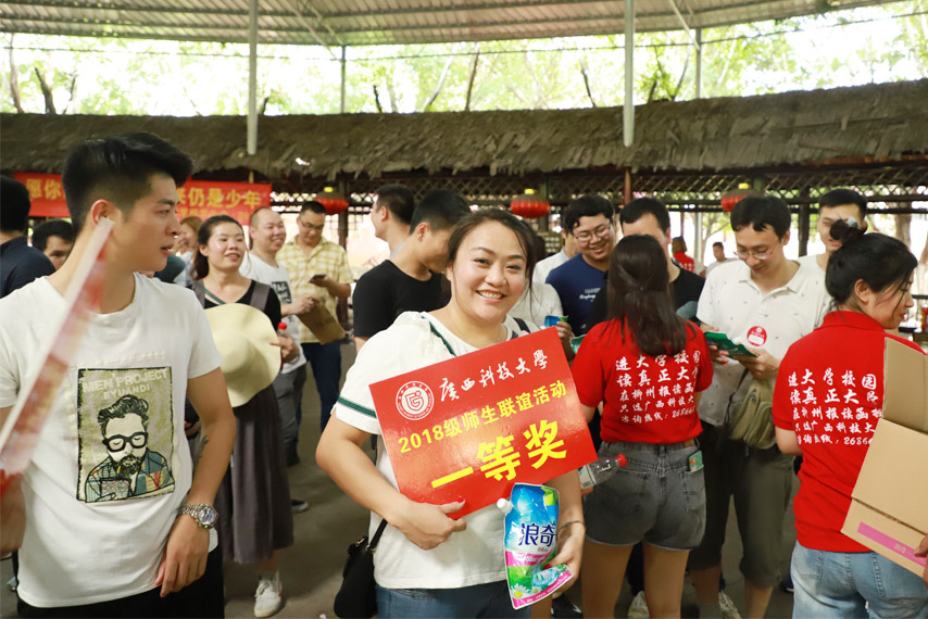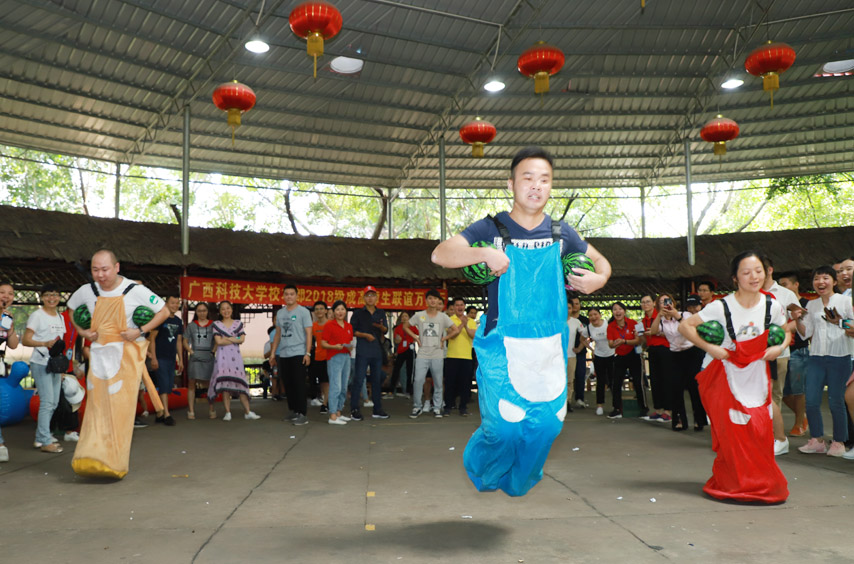 盛夏六月,一起悅享。6月9日、10日,廣西科技大學(xué)成高2018級師生聯(lián)誼活動在柳州精彩舉行,繼續(xù)教育學(xué)院副院長楊勝和學(xué)歷教育科科長吳衛(wèi)龍與300余名師生參加了活動。本次活動由廣西科技大學(xué)繼續(xù)教育學(xué)院招生辦公室組織,活動分為兩站,第一站萬聚山莊,第二站七彩山莊,包括快樂聚餐、趣味互動游戲、燒烤等環(huán)節(jié)。精心組織的趣味互動游戲環(huán)節(jié)是每一場活動的亮點和笑點,其中第一場萬聚行活動設(shè)置了抱球袋鼠跳、“盲人過河”、充氣毛毛蟲接力、排隊吃西瓜游戲;第二場七彩行活動設(shè)置了充氣毛毛蟲、筷子夾李子、大腿夾名片游戲,分成6個團隊進行互動游戲和比賽。好戲輪番登場,歡樂隨時呈現(xiàn),同學(xué)們的熱情讓這個火熱的盛夏更燃,而師生們展現(xiàn)了團隊協(xié)作的力量和不怕付出的精神,一起悅享這美好時光。