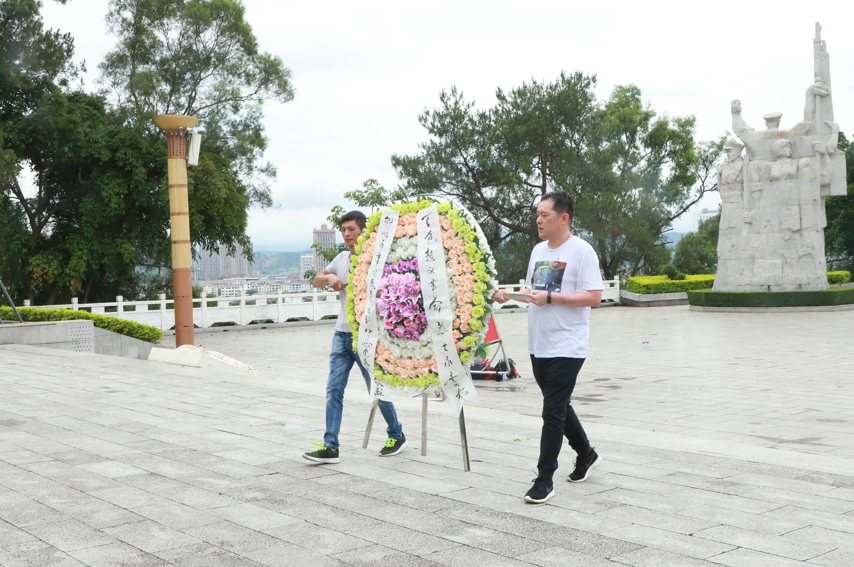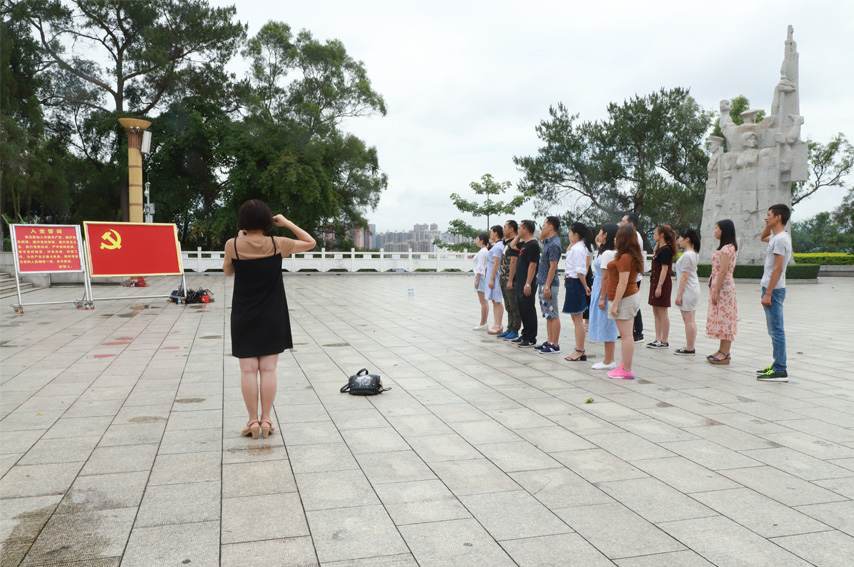 在題寫著“百色起義的革命先烈永垂不朽”幾個大字的百色起義紀(jì)念碑前,育才黨支部的黨員同志面對黨旗右手握拳,懷著崇敬的心情站在這片革命先烈用生命和鮮血滋養(yǎng)的紅色土地上,重溫入黨誓詞,表達(dá)對黨的堅定信念和為黨的事業(yè)奮斗終生的決心。宣誓完畢,全體人員向烈士們默哀致意并敬獻(xiàn)花藍(lán),緬懷革命先輩的豐功偉績,并寄托哀思之情。百色市右江區(qū)黨校的老師進(jìn)行現(xiàn)場教學(xué),向全體黨員講述了百色起義英烈們?yōu)榱死硐胗⒂露窢帲慌聽奚某绺邜蹏髁x精神。
