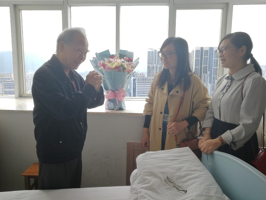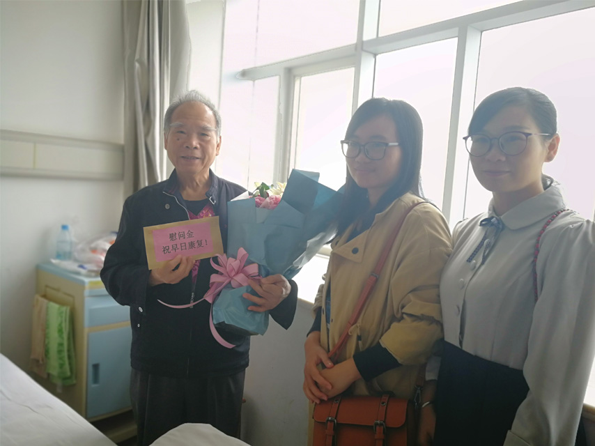 10月12日上午,廣西育才教育工會和廣西師范大學(xué)育才教育函授站班主任代表一行前往柳州柳鐵中心醫(yī)院看望生病住院的學(xué)生阮學(xué)林,送上慰問金與深切關(guān)懷。